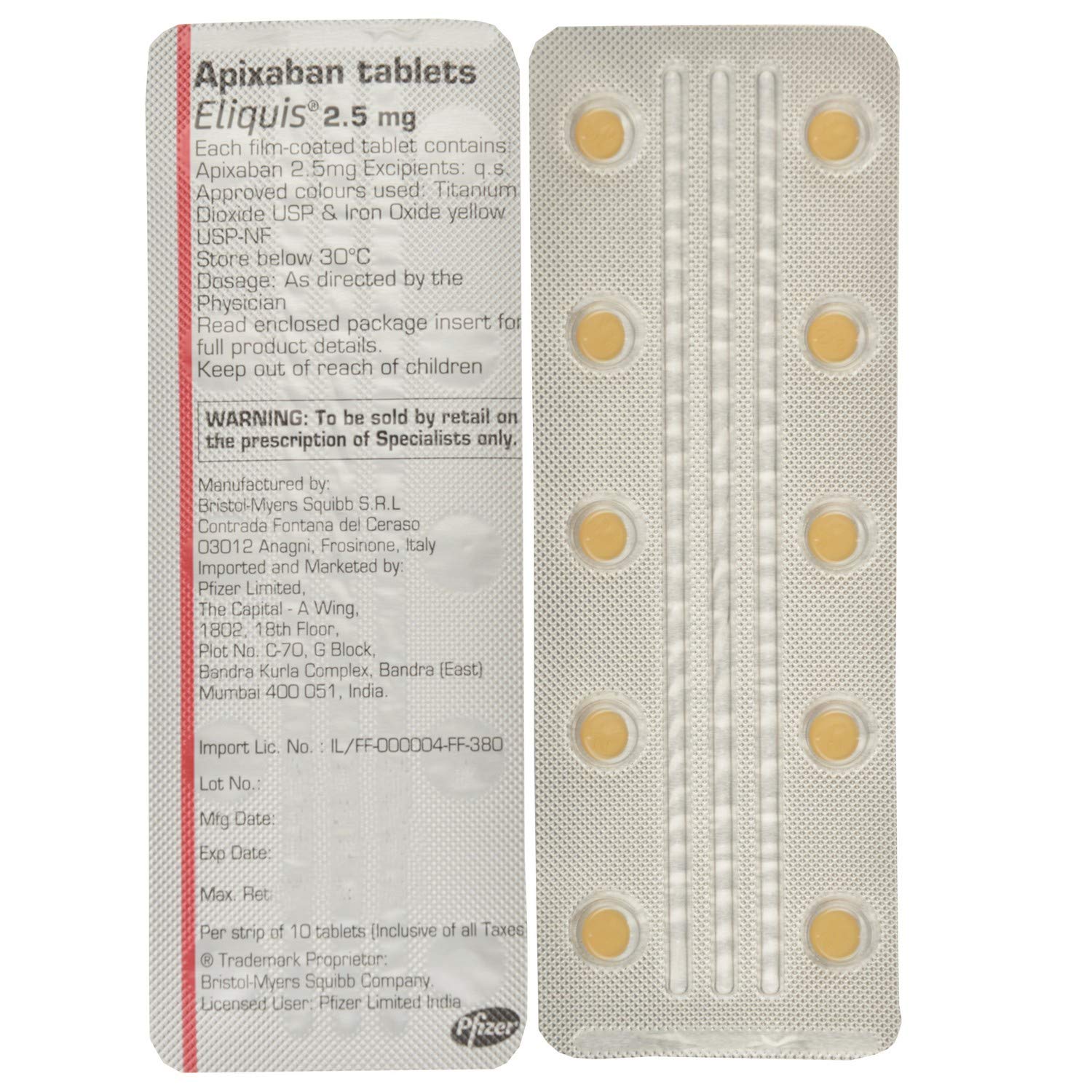 - Manufacturer: Bristol-Myers Squibb Co, Pfizer.